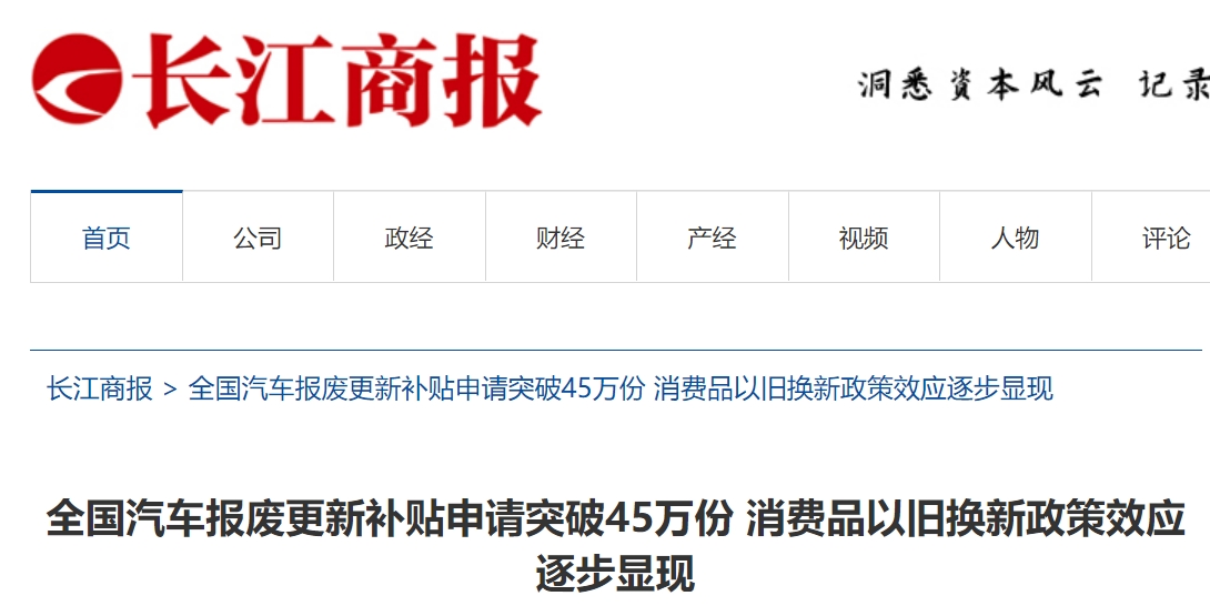 全國汽車報廢更新補貼申請突破45萬份