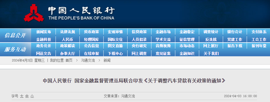 中國人民銀行等兩部門:鼓勵金融機構(gòu)適當減免汽車以舊換新提前結(jié)清貸款產(chǎn)生的違約金