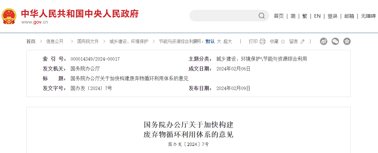 *********辦公廳關于加快構(gòu)建廢棄物循環(huán)利用體系的意見
