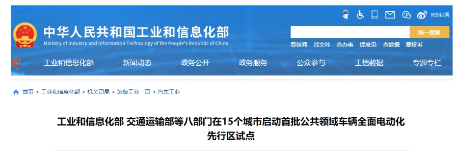 工信部等八部門在15個(gè)城市啟動(dòng)首批公共領(lǐng)域車輛全面電動(dòng)化先行區(qū)試點(diǎn)一圖讀懂(來源:裝備工業(yè)一司)