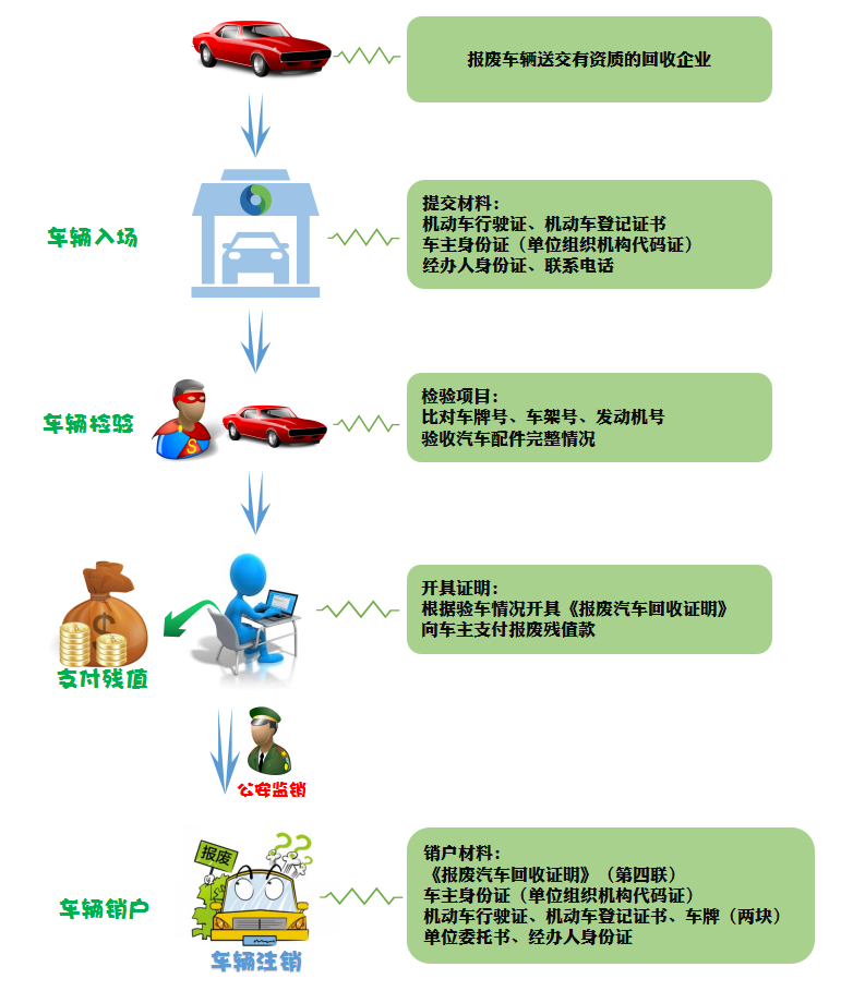 對報廢出租車(chē)進(jìn)行無(wú)害化處理、拆除可再利用的零部件和總成;按各物品的材質(zhì)種類(lèi)分別存放;對機體和結構件等進(jìn)行壓扁或切割處理。